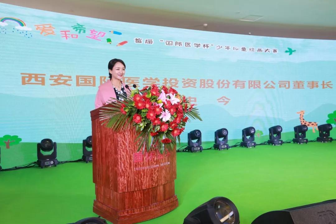 史今董事長首先對在賽事籌備、征集、評選期間付出辛勞的老師、同學們及給予賽事高度關注的社會各界表示感謝,她在講話中提到:舉辦首屆“國際醫學杯”少年兒童繪畫大賽,旨在推動少兒美學教育發展,引導少年兒童樹立“關注健康 服務社會”的理念,同時倡導社會各界共同關注民生健康。