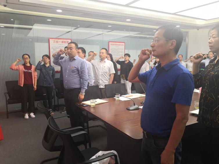 城市黨委對這次系列參觀活動很重視,副書記楊劍、黨委委員尚正祥、曹涯超隨后與支部黨員進行了座談。黨委委員曹涯超介紹了黨委的基本情況,說明近一段時間的主要工作,并現場為支部成員發放了《中國共產黨黨員教育管理工作條例》、《掃黑除惡專項斗爭應知應會手冊》。王杲書記匯報支部成立以來的黨建工作和組織發展情況。楊書記帶領大家進行黨員宣誓,重溫誓詞。