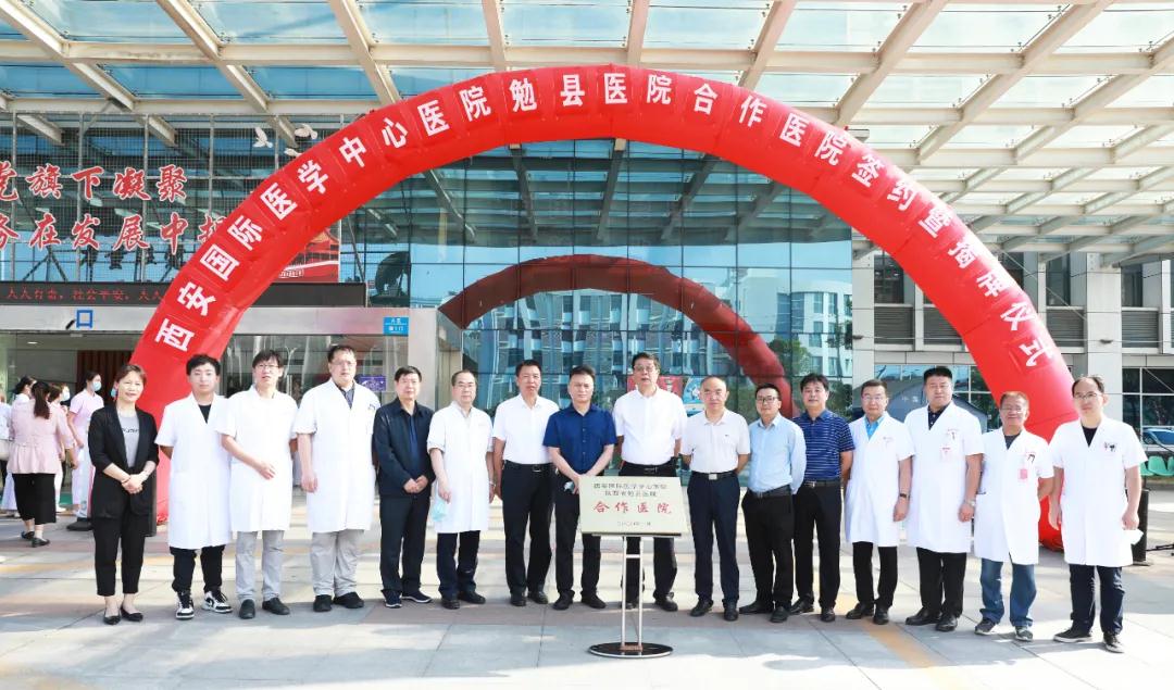 6月18日,西安國際醫學中心醫院與勉縣醫院舉行合作醫院簽約暨揭牌儀式,以及義診活動。西安國際醫學中心醫院楊峰副院長、勉縣醫院張存院長及相關科室人員參加。此次活動,兩家醫院決定共建醫聯體,在醫、教、研、急救、保健、康復、醫養等進行深度協作。