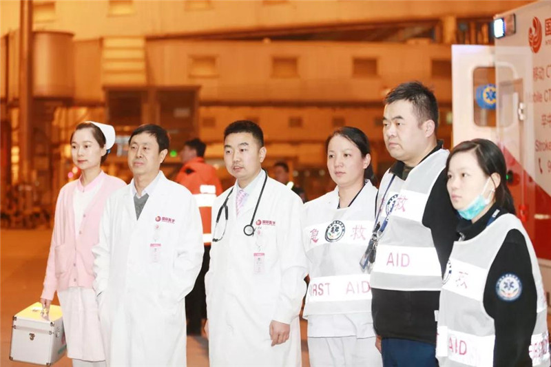 12月4日晚18點,西安國際醫學中心醫院神經外科已做好了一切迎接患者的準備,賀世明主任領隊的西北首臺腦卒中救援車也準時從西安國際醫學中心醫院出發。救援過程中,得到了西安咸陽機場海關、西安咸陽國際機場運行控制協調中心以及春秋航空的大力支持,晚20點55,落地的航班與救護車第一時間在停機坪實現了無縫對接,醫護人員齊心協力將患者安全轉運至西安國際醫學中心醫院,接受進一步治療。