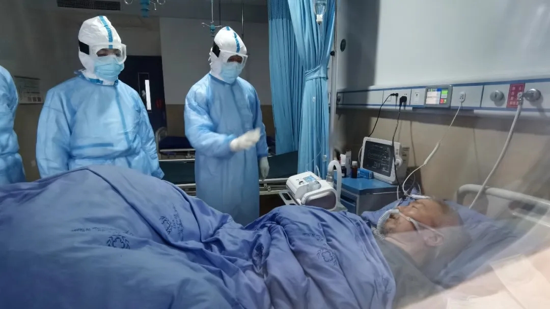 著名呼吸專家吳昌歸教授、心臟病學(xué)專家王海昌教授、著名傳染病學(xué)專家賈戰(zhàn)生教授等查房后,共同為患者制定治療方案。腫瘤醫(yī)院副院長薛妍教授、楊宗義主任、倪曉慧總護(hù)士長等一邊調(diào)整治療方案,一邊鼓勵患者。高釗醫(yī)生主動承擔(dān)起患者的監(jiān)護(hù)任務(wù)。