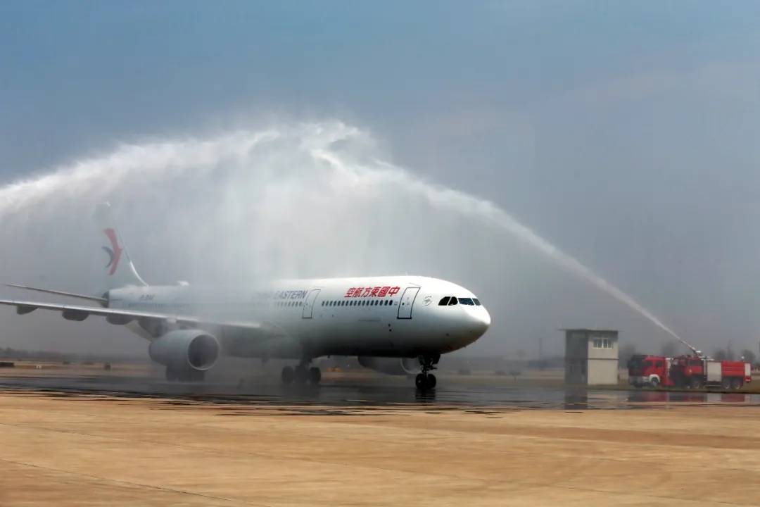 西安國際醫學中心醫院支援湖北醫療隊乘坐的飛機降落在西安咸陽機場,兩道噴薄而起的水柱形成一道亮麗的彩虹,為抗疫歸來的勇士們送上了家鄉人民的敬意。