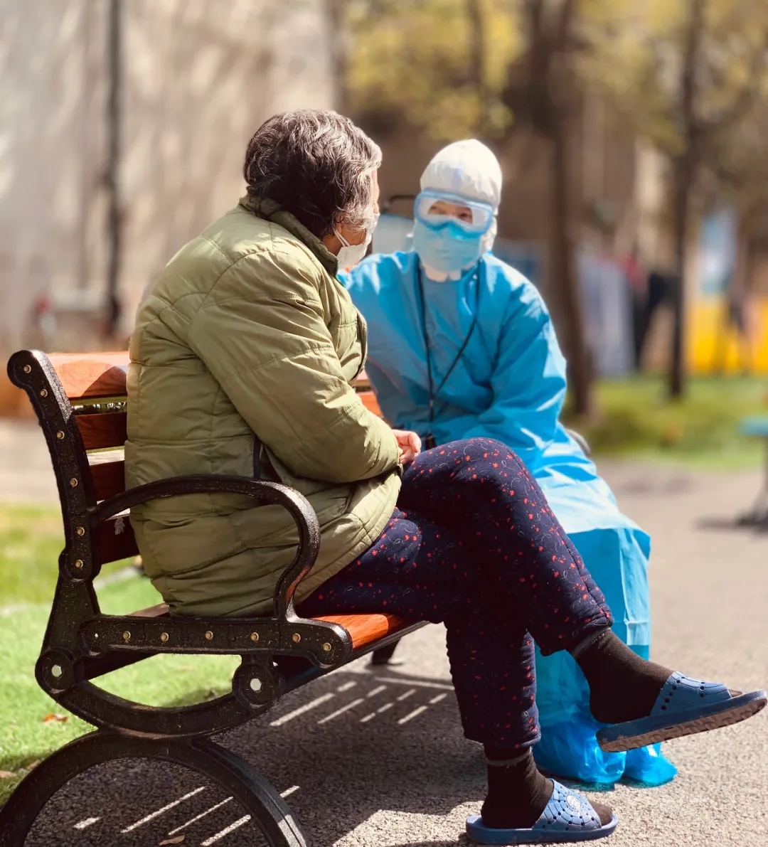 8艙有一位80多歲的老奶奶,中午出來遛彎時看到了醫療隊護士萬珍妮,主動過來攀談。“你是陜西來的?我看你衣服上寫著西安幾個字了。”“是啊,奶奶,我們是西安國際醫學中心醫院來武漢支援的。”萬珍妮通過和奶奶聊天得知,奶奶的父親以前在寶雞工作過很長時間。“我也算半個陜西人了。沒想到在這里還能見到“老鄉”!感謝你們!”奶奶感覺很親切,和萬珍妮話起了“家常”。