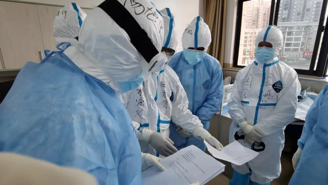 越是困難大,越要向前沖。王海昌穿上嚴實的防護服、戴上專業的口罩、戴上2層手套扎緊袖口,撕開防護衣胸前封條貼近縫隙,蓋上防護面罩……他的全身被白色防護服裹得嚴實,僅顯出護目鏡下的雙眼。為鼓勁,他們在防護服前胸和后備用馬克筆寫上姓名,又在防護服背面空白添上“加油”的字及感嘆號。