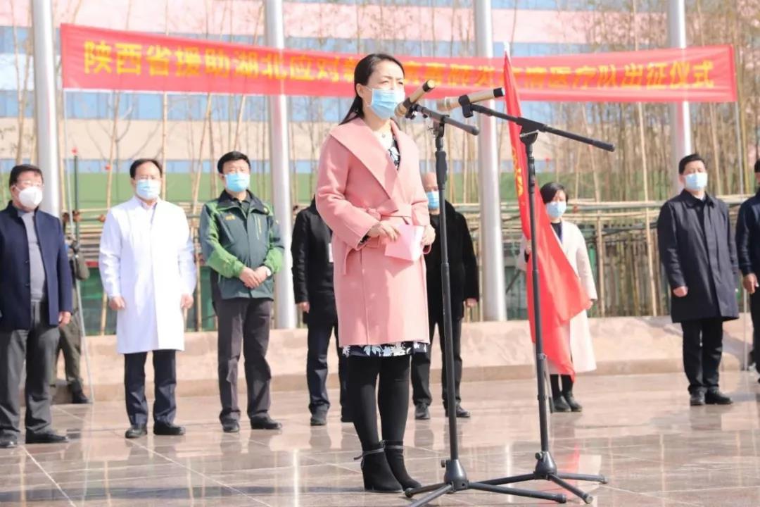 劉勤社同志代表省委省政府為大家壯行,他表示,“武漢疫情依然嚴峻,每位醫護人員勇于擔當的精神令我感動。截止目前,陜西已派出近1400名醫護人員奔赴‘前線’,省委省政府為陜西醫療隊昂揚的斗志,負責的精神給予高度贊揚。希望大家在一線充分展示陜西醫療隊和國際醫學應有的高質量醫療技術水平,同時也做好自我防護,盼大家凱旋回家!”