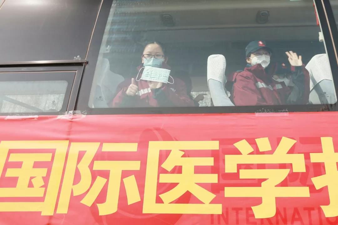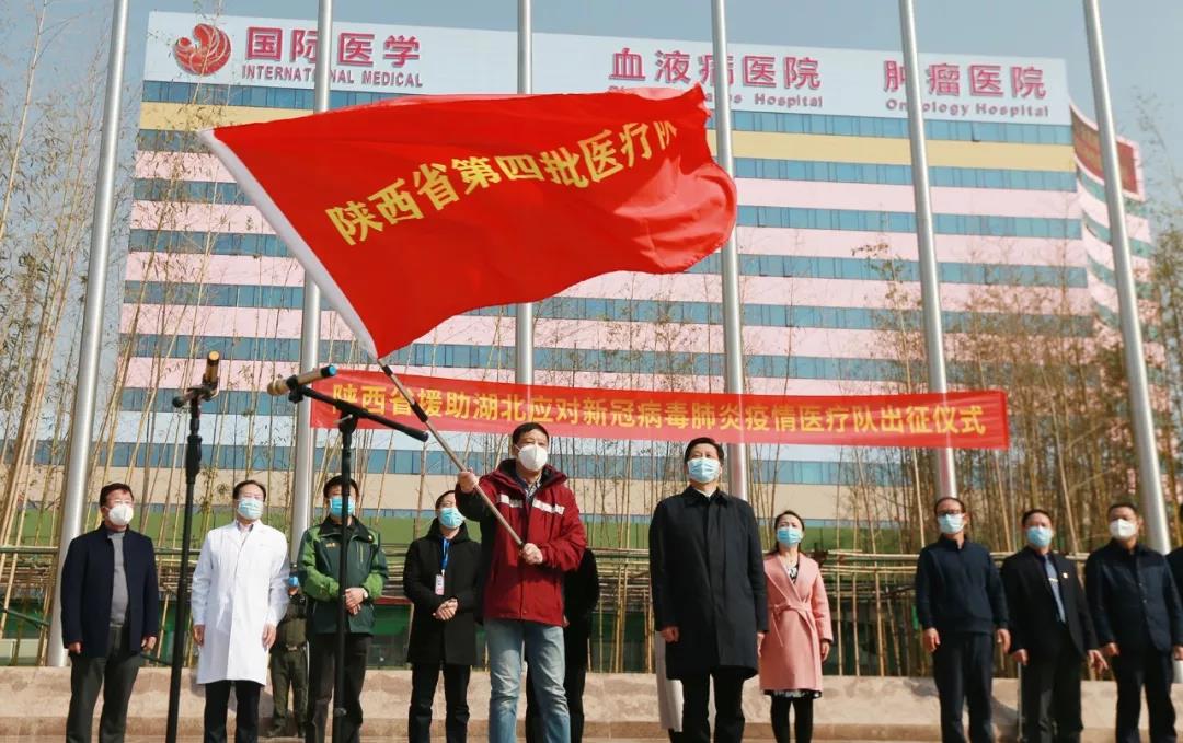 “每一次集結號吹響,你們都奮勇向前,在疫情面前無私奉獻、敢于擔當,正是因為我們有大愛。國際醫學人時時刻刻都不忘初心、牢記使命,用行動踐行我們的誓言:施天使之愛,佑百姓健康!”董事長史今在儀式上向出征隊員致敬并叮囑隊員們一定要保護好自己,“零感染、高質量、共克時艱,出色完成患者的救治任務。你們帶去的是陜西人民對武漢人民的深情厚誼,要讓黨旗在一線高高飄揚!和武漢人民一起共度難關!”