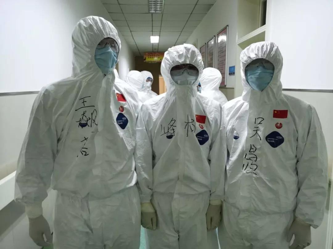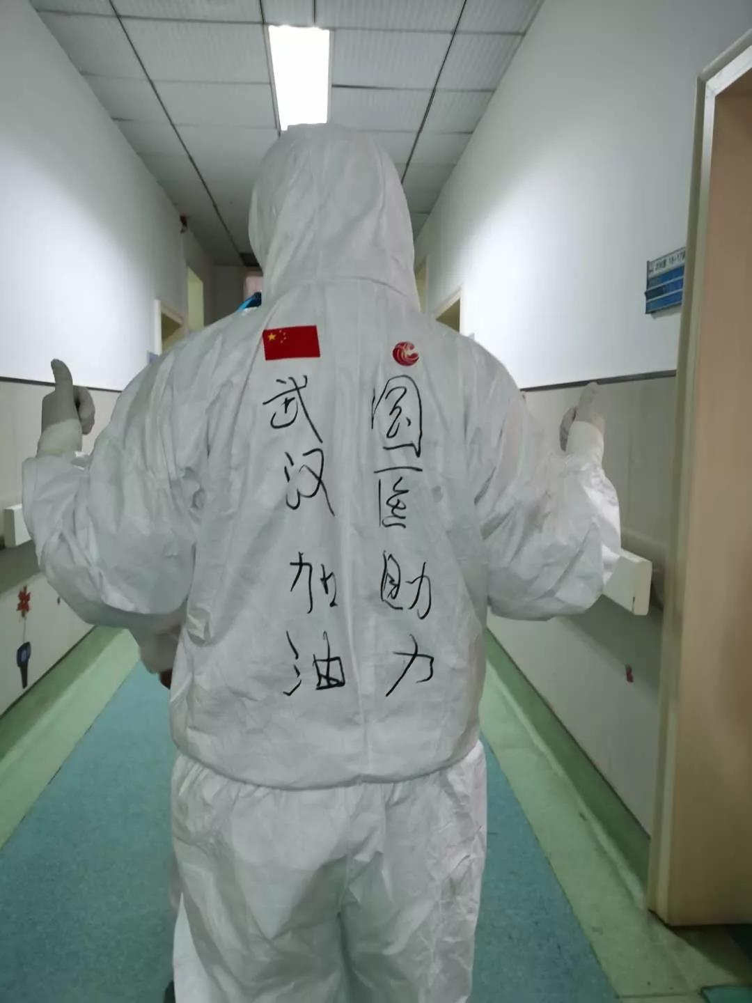 培訓后的隊員開始穿戴防護服,由于身著防護服,看不清彼此的面容,醫護人員在防護服上背后寫上自己的姓名,一個個化身暖心“大白”,彼此加油打氣,“武漢加油、國醫加油!”一字一句鼓舞人心,充滿力量。面對疫情和種種未知的風險,西安國際醫學中心醫院醫療隊隊員主動請纓,勇于上前,他們是最美逆行者!
