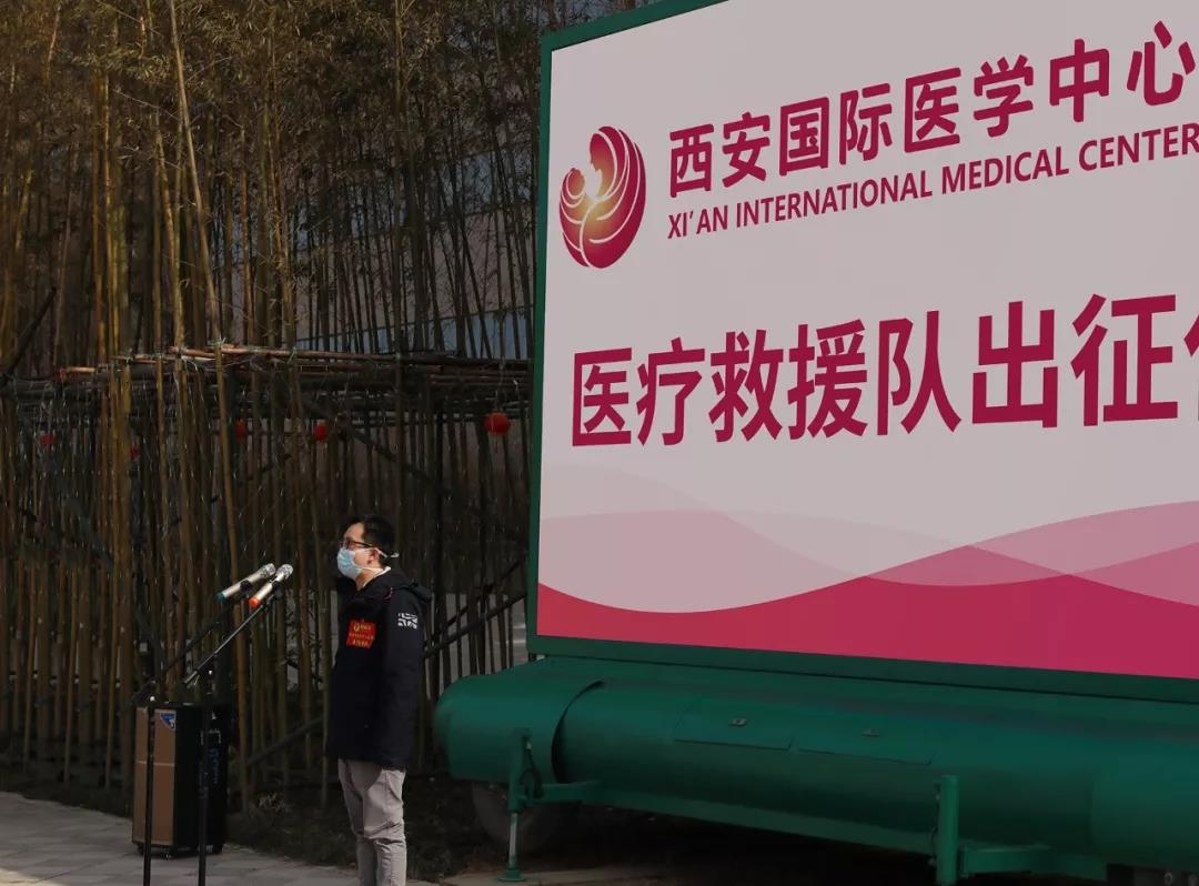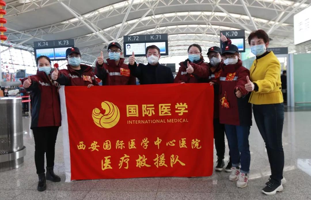 2月2日,西安國際醫學中心醫院舉行赴武漢醫療救援隊出征儀式。尹強院長、王志峰總經理、楊峰副院長及300余名醫護人員參加。