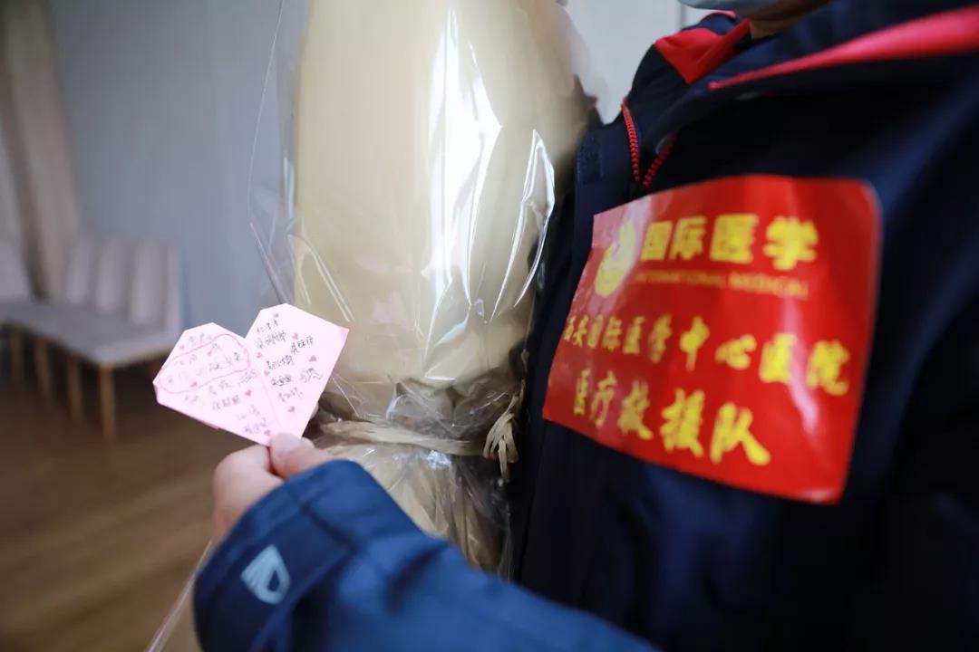 “國際醫學加油!武漢加油!中國加油!”全體醫護人員鏗鏘有力的聲音傳達出身為國際醫學人的自豪感與使命感,堅定了同舟共濟、抗擊疫情的信心。