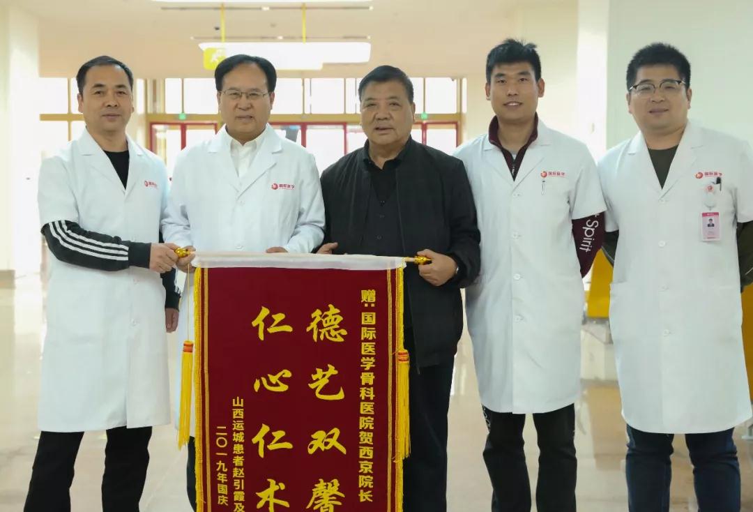 10月9號下午兩點半,患者家屬專程來到骨科醫(yī)院向賀西京院長贈送錦旗以示感謝。所有參與手術(shù)的醫(yī)護工作者都非常欣慰,并表示會再接再厲,珍惜每一次服務(wù),一次做好。