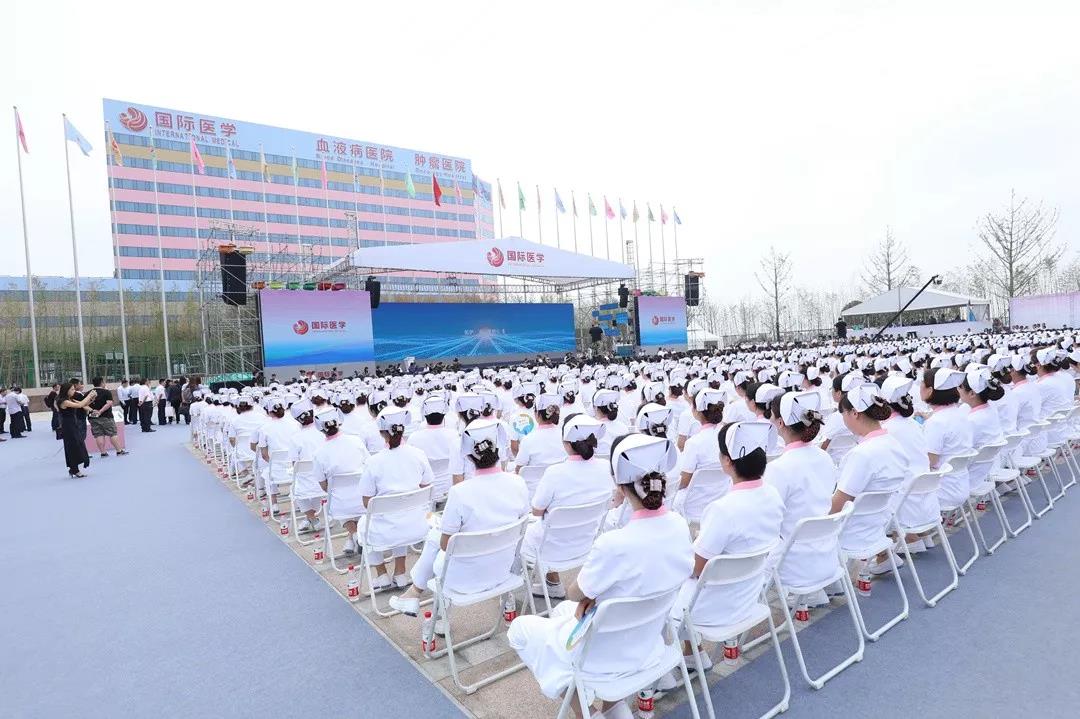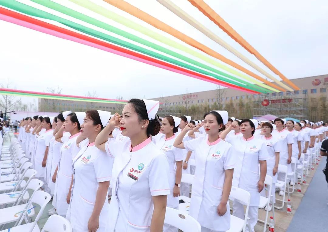 國際醫學2000余名醫護工作者在西安國際醫學中心院長尹強帶領下進行莊嚴宣誓:“我們是天的使者,以救死扶傷為天職……施天使之愛 佑百姓健康”鏗鏘有力的誓言,道出國際醫學人致力神圣醫療事業的心聲。