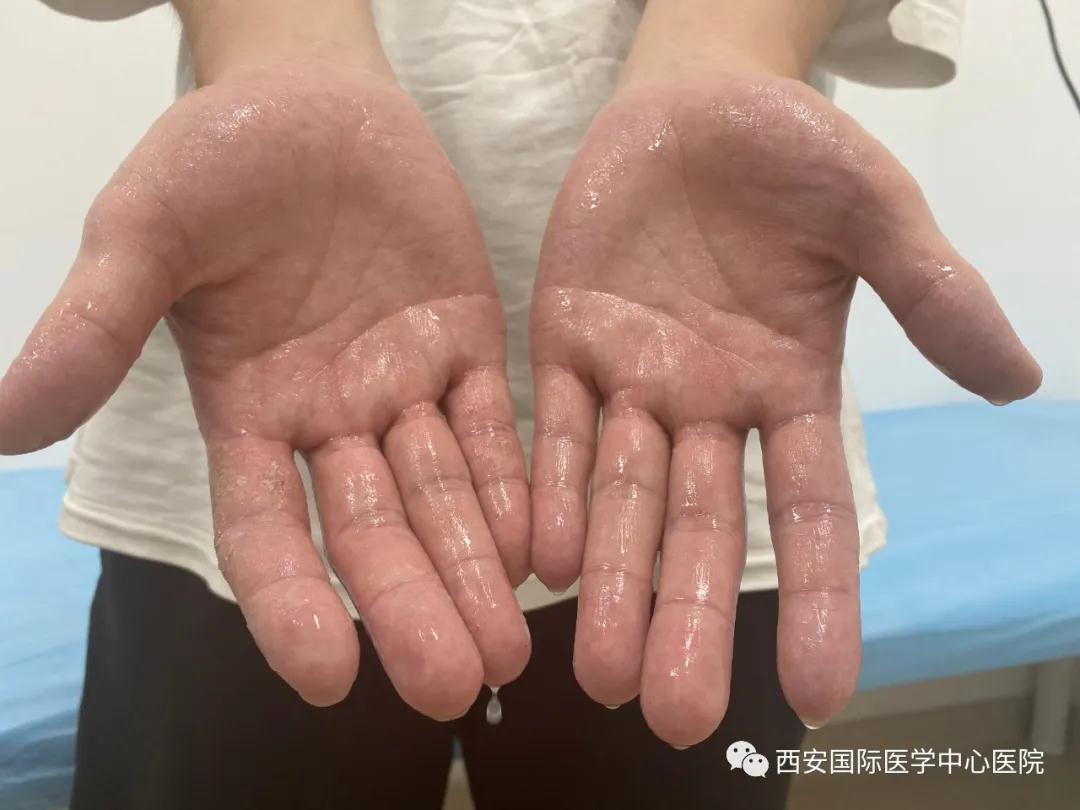 當他提起筆時,作業試卷浸濕了;當他拿手機時,太多的汗水無法識別指紋,手機不能解鎖;乘坐公交時,手滑抓不住扶手……手汗癥嚴重影響小袁的生活學習。7月14日,小袁慕名來到西安國際醫學中心醫院就診。