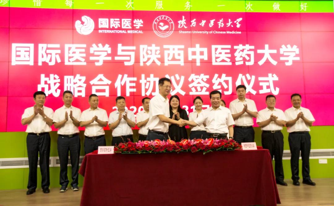 7月31日上午,西安國際醫(yī)學(xué)投資股份有限公司與陜西中醫(yī)藥大學(xué)戰(zhàn)略合作協(xié)議簽署暨附屬醫(yī)院揭牌儀式在西安國際醫(yī)學(xué)中心醫(yī)院保障樓6樓會議室舉行。陜西省中醫(yī)藥管理局副局長孔群、陜西中醫(yī)藥大學(xué)校長孫振霖、陜西中醫(yī)藥大學(xué)黨委副書記于遠望、陜西中醫(yī)藥大學(xué)黨委副書記蒲濟生,國際醫(yī)學(xué)實際控制人劉建申、董事長史今、黨委書記、總裁劉瑞軒及西安國際醫(yī)學(xué)中心醫(yī)院院長尹強、總經(jīng)理王志峰等領(lǐng)導(dǎo)出席儀式,陜西中醫(yī)藥大學(xué)及國際醫(yī)學(xué)各醫(yī)院相關(guān)人員參加活動。