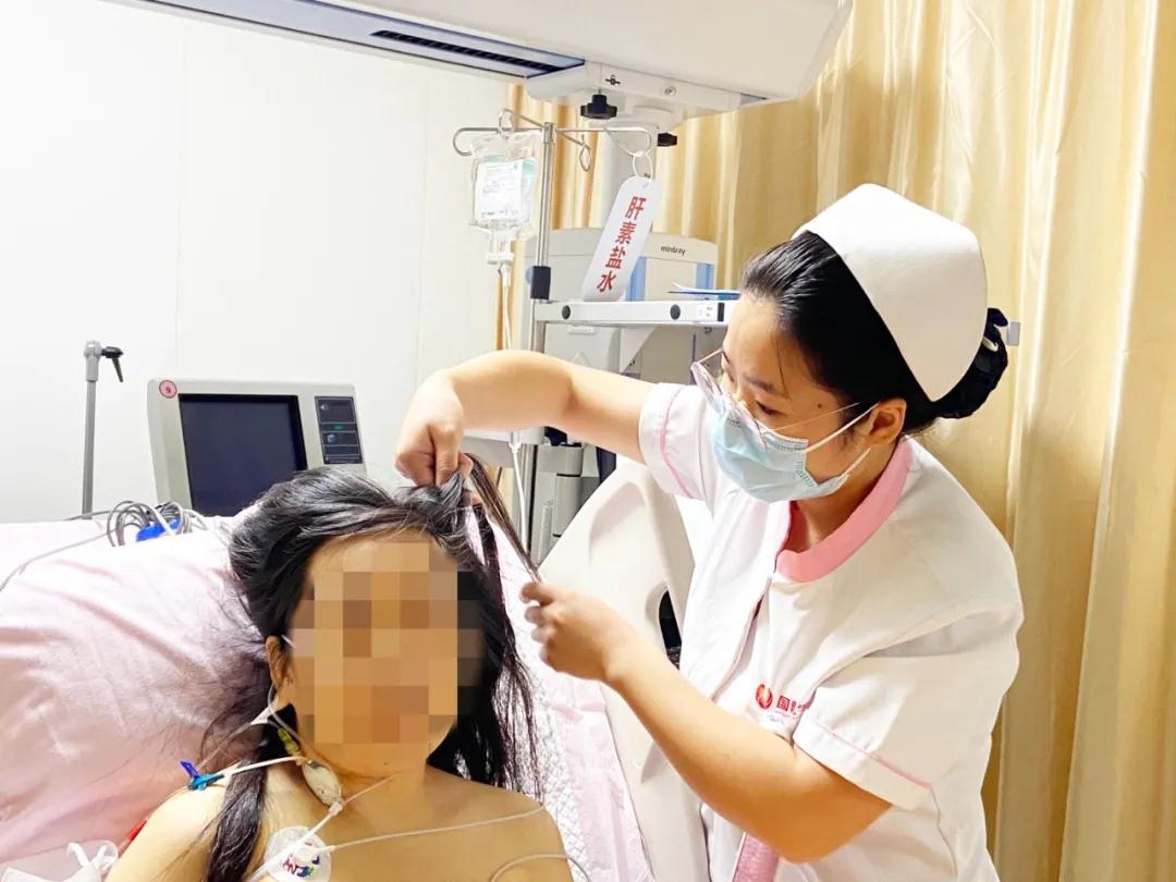 術后第二天患者便拔出了氣管插管,她坐在床上,一位護士小姐姐給她梳著辮子,她娓娓道來,我也走進了她的故事。她是商洛市鎮安縣人,三口之家,和睦幸福,因為自己身體不好,所以一直沒有外出工作,居家照顧孩子和照顧老公成了她的第一要務。一直都知道自己是心臟方面的問題,早都應該去正規大醫院診治,但因為各種原因一拖再拖。老公最近很忙、女兒要參加中考了、等孩子畢業有了工作再說、等家里負擔輕一些再說… …四十多歲的人就是這樣,生活中只有家人,很少顧及自己。說時的哽咽打斷了她話語的連續。