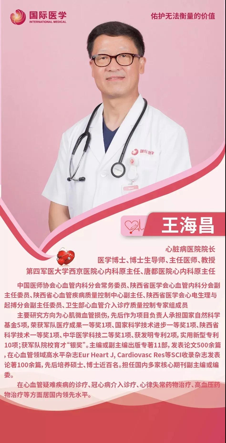 他,就是西安國際醫(yī)學中心醫(yī)院心臟病醫(yī)院院長、教授、主任醫(yī)師王海昌。