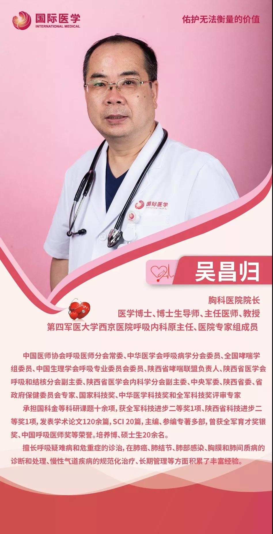 2019年,結(jié)束了在西京醫(yī)院29年的軍醫(yī)生涯的吳昌歸,來到西安國際醫(yī)學(xué)中心醫(yī)院,出任胸科醫(yī)院院長。吳昌歸一開始就將自己的工作安排的滿滿當(dāng)當(dāng),每周四個半天門診,三個半天查房,患者依舊是他工作的中心。