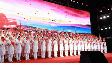 88名醫務人員中的預備黨員、入黨積極分子組成的天使合唱團,此次參賽曲目是《映山紅》。歌曲《映山紅》系電影《閃閃的紅星》的插曲,表達了人民對紅軍的熱愛,對英雄的崇敬之情。
