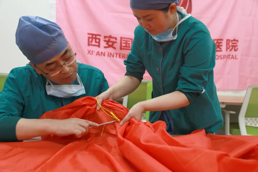 以手術針為工具,用接力的形式凝心聚力,把對黨的忠誠與熱愛融進針線中。西安國際醫學中心醫院黨委設有11個黨支部,有607名黨員,其中專家黨員200余名。繡黨旗活動是該院開展黨史學習教育的一項重要內容。共憶入黨初心、從醫使命,回顧黨的光輝歷程,通過此項活動,黨員們的榮譽感、使命感和責任感增強了,更加堅定了聽黨話、跟黨走的信念。