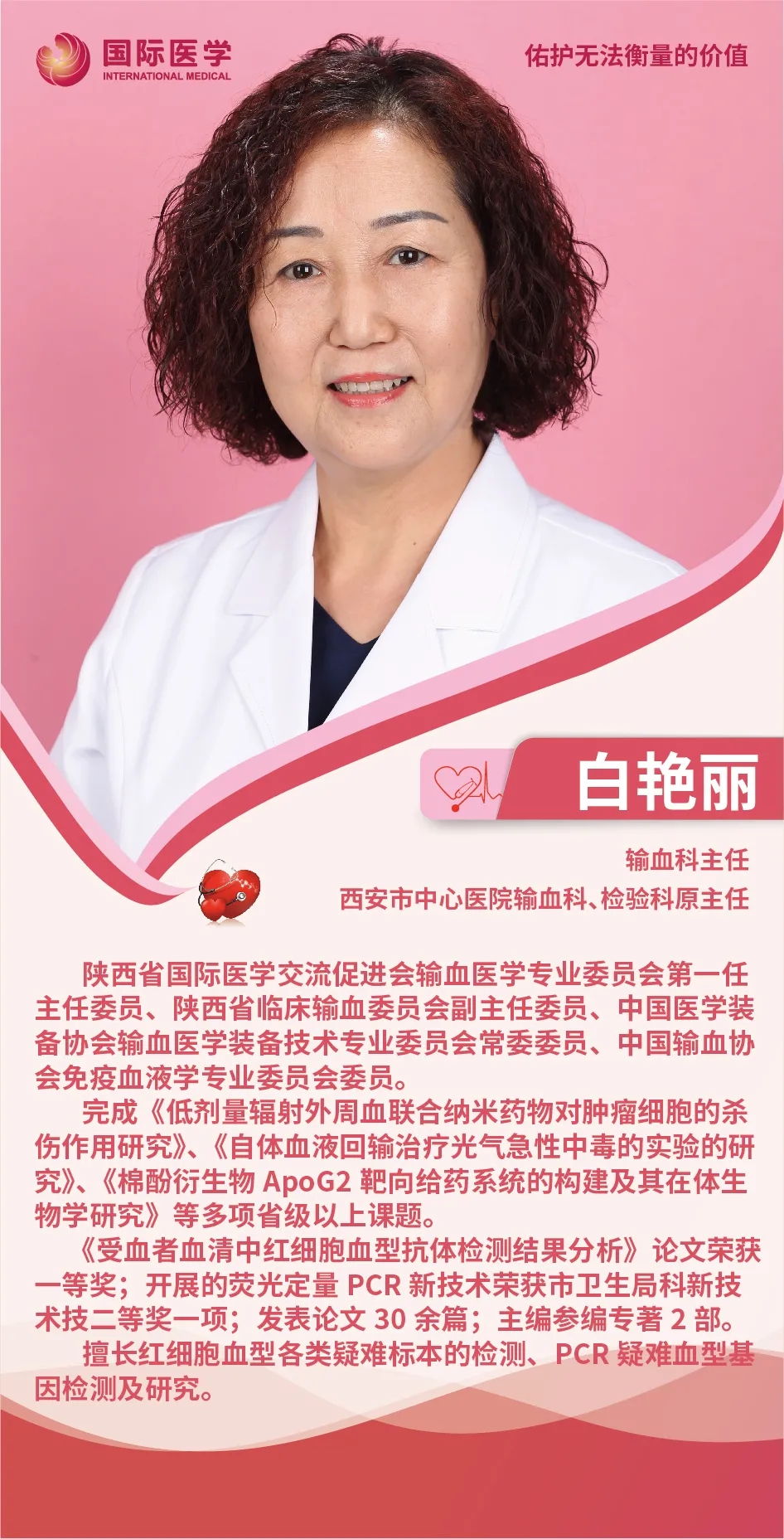 她就是西安國際醫學中心醫院輸血科主任——白艷麗。
