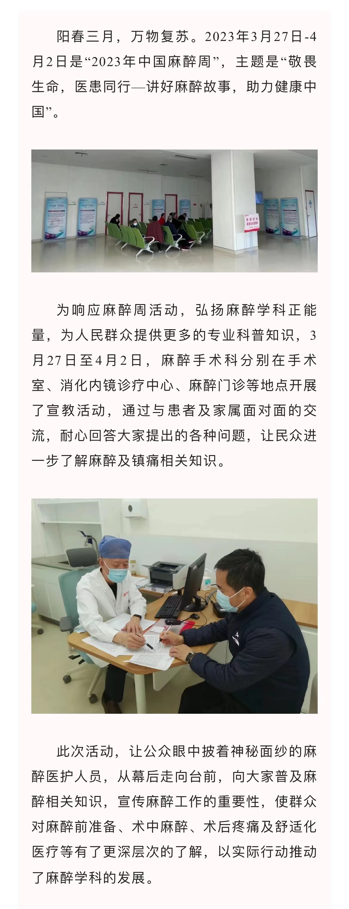 敬畏生命,醫(yī)患同行——我院開展“中國(guó)麻醉周”宣教活動(dòng)