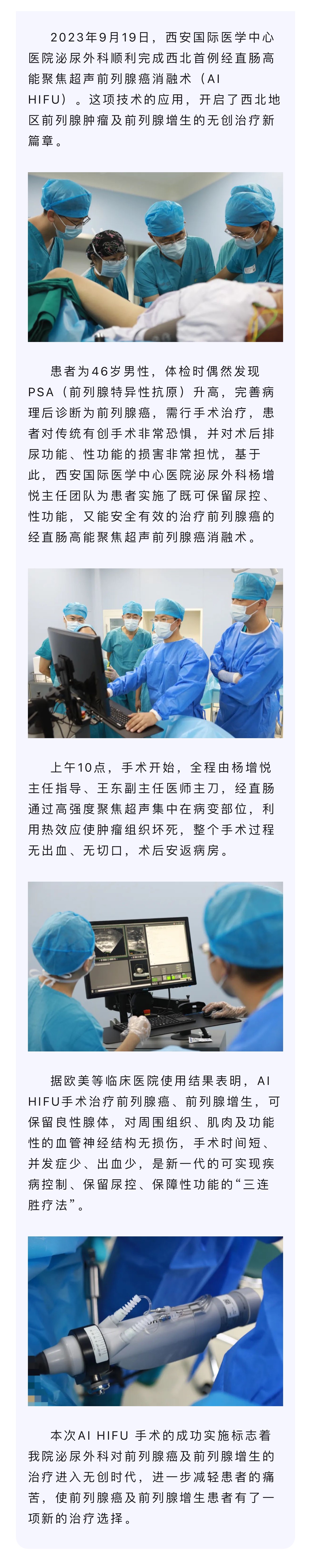 我院完成西北首例經(jīng)直腸高能聚焦超聲前列腺癌消融(AI HIFU)手術(shù)