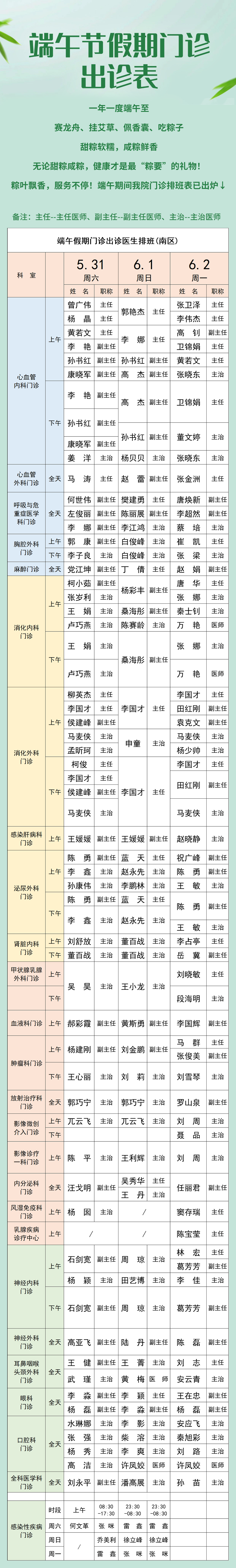 “粽”要提醒!端午節門診出診表出爐