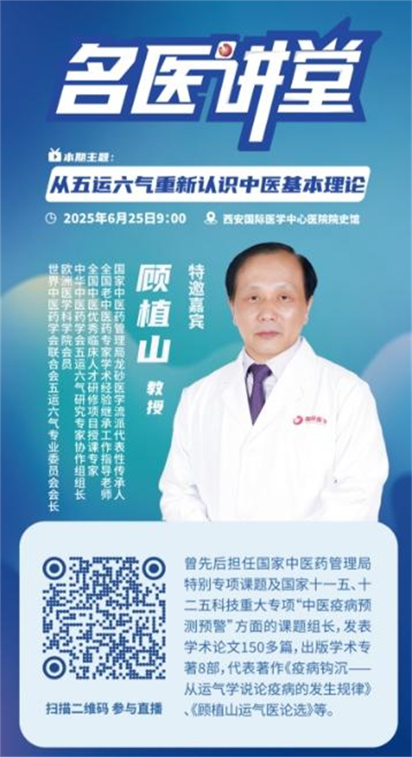 6月25日上午,由西安國(guó)際醫(yī)學(xué)中心醫(yī)院主辦的"名醫(yī)講堂"系列學(xué)術(shù)活動(dòng)在院史館舉行。本次講座邀請(qǐng)到國(guó)家中醫(yī)藥管理局龍砂醫(yī)學(xué)流派代表性傳承人顧植山教授,作《從五運(yùn)六氣重新認(rèn)識(shí)中醫(yī)基本理論》的專題報(bào)告。西安國(guó)際醫(yī)學(xué)中心醫(yī)院尹強(qiáng)院長(zhǎng)、中醫(yī)醫(yī)院趙曉平院長(zhǎng)、中醫(yī)二科卓鷹主任及科室醫(yī)護(hù)人員、百余名中醫(yī)從業(yè)者及愛好者參會(huì)學(xué)習(xí),重新認(rèn)識(shí)博大精深的中醫(yī)理論。