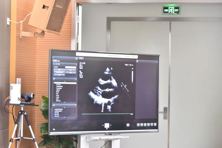 5G遠程會診現場,西安國際醫學中心心內科張衛澤主任、超聲科陳姍姍主任打開4K高清顯示器,屏幕上立刻出現了商洛國際醫學中心的B超畫面,一位醫生正在為患者做心臟B超,隨著探頭的轉動,超聲機器上的畫面清晰可見,雖然兩家醫院相距一百多公里,但畫面流暢,沒一點拖沓。