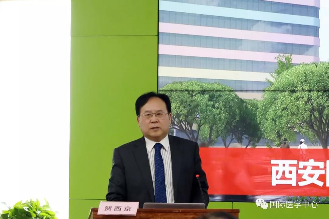 在觀看了西安國際醫學投資股份有限公司宣傳片之后。西安國際康復醫學中心賀西京院長介紹了西安國際康復醫學中心的建設和籌備情況,并對康復中心的發展規劃做了詳盡的展示。